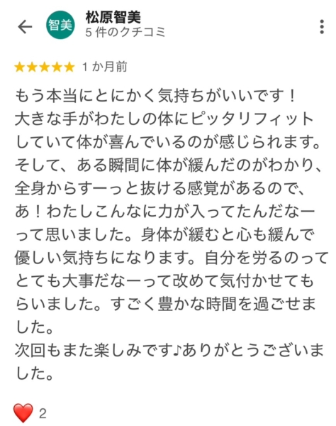 お客さまの声 ~全身からすーっと力が抜ける感覚~